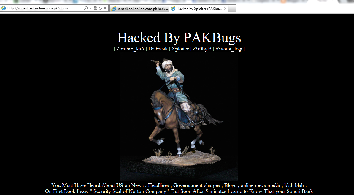 The complete deface message left by hackers on the hacked Soneri Bank website page can be found below.