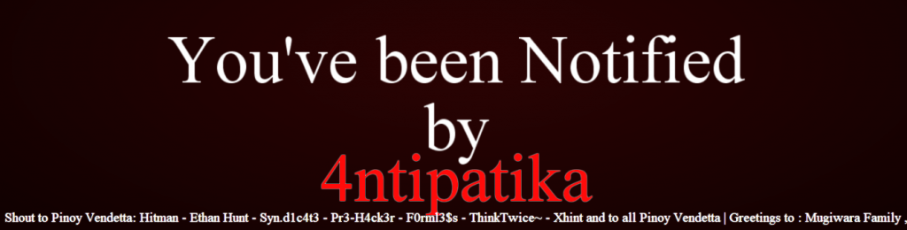 PC World Philippines Website hacked and defaced by 4ntipatika from Pinoy Vendetta. The website (www.pcworld.com.ph) is still defaced, at the time of writing.
